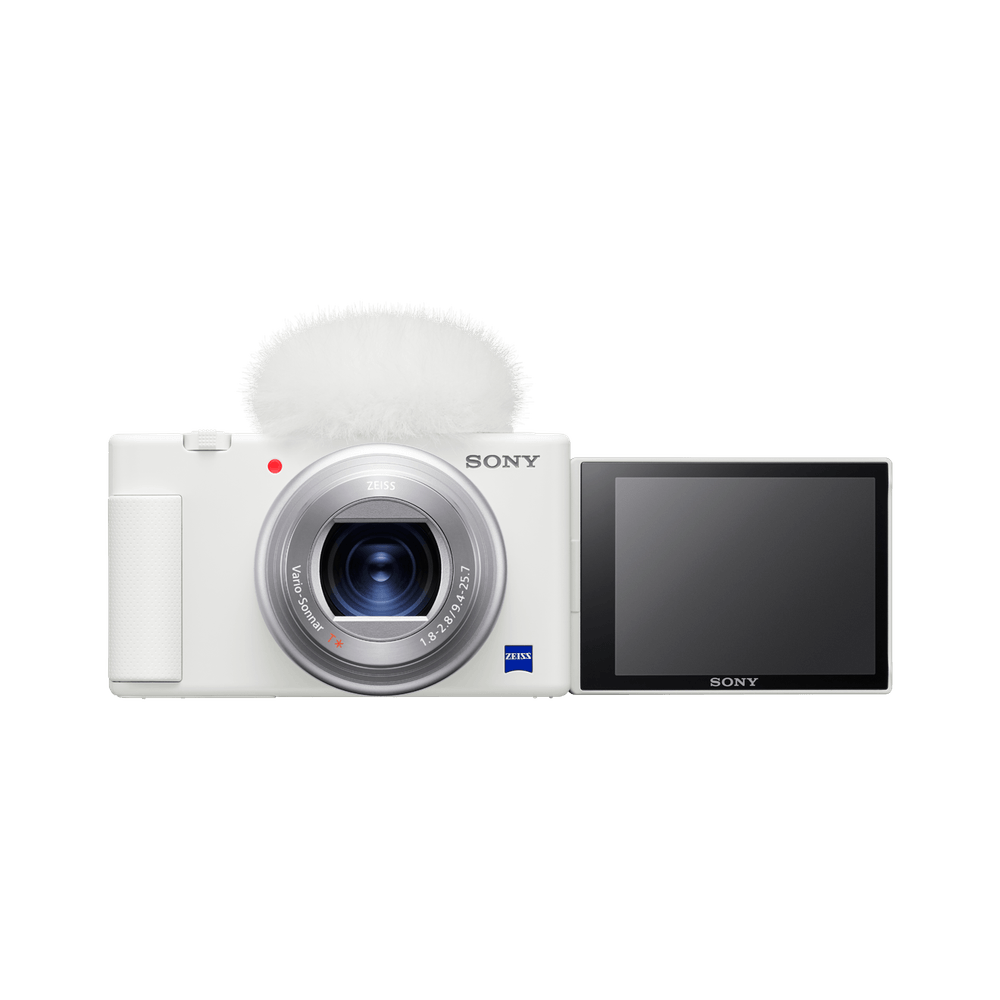| Features | Pantalla LCD multiángulo para la captura precisa de selfis La pantalla LCD desplegable te permite comprobar el encuadre mientras grabas sin que el resto de accesorios te limiten la visión. Los controles del panel táctil permiten ajustar de manera sencilla e intuitiva el enfoque, el obturador y otras opciones de configuración incluso al tomar selfis. Micrófono direccional de 3 cápsulas y paravientos incorporado Graba tu voz con claridad incluso en mitad de una multitud con el micrófono integrado de 3 cápsulas. A su diseño y estructura únicos se suma un filtro espacial que captura el audio frontal de la cámara de forma nítida y reduce los molestos ruidos ambientales. Además, también puedes acoplar el paravientos incluido para grabar tranquilamente al aire libre sin importar las condiciones de viento. Optimizada para tomar selfis de manera fácil y natural La ZV-1 está diseñada para grabar videoblogs de manera sencilla y rápida gracias a su empuñadura ergonómica y a una luz de grabación brillante para que nunca te olvides de iniciar la grabación. Compatible con empuñaduras Bluetooth® todo en uno La ZV-1 es compatible con nuestra amplia gama de empuñaduras de grabación, incluida la GP-VPT2BT con tecnología inalámbrica Bluetooth®, para controlar fácilmente y a distancia la grabación, el zoom e incluso los controles personalizados asignables sin cables. Nuestras empuñaduras son el accesorio ideal para grabar videoblogs de forma estable y flexible, mientras que nuestros compactos minitrípodes permiten grabar cómodamente en cualquier parte. Tonos de piel atractivos y naturales para todos La ciencia cromática mejorada de Sony ofrece imágenes naturales y llenas de vida, destacando especialmente los diversos tonos de piel. Esta opción está disponible tanto para la captura de fotos como de video y permite aplicar un efecto de piel suave que reduce las imperfecciones. Imagen de alta calidad y efectos avanzados sencillos A pesar de su diseño compacto, la ZV-1 está equipada con un sensor de gran tamaño CMOS Exmor RSTm de tipo 1.0 que ofrece imágenes de alta calidad en condiciones de iluminación tenue o difíciles. Además, el sensor garantiza imágenes profesionales con un efecto bokeh, así como una lectura de datos de alta velocidad para grabación de video 4K o cámara superlenta1. Deja que la cámara se ocupe del enfoque con la opción de seguimiento en tiempo real Mira a la cámara y esta reconocerá información de color, patrón (brillo), distancia del objeto (profundidad) y cara/ojo con un seguimiento preciso del enfoque automático. Además, cuando la cámara reconoce ojos, caras u objetos, se muestra un marco en cada sujeto para indicar que el objeto está enfocado y puedas realizar la captura sin preocupaciones. Cambia rápidamente el enfoque entre sujetos El sensor de enfoque automático con detección de fases en plano focal de alto rendimiento garantiza un enfoque de alta precisión y rapidez con enfoque automático híbrido rápido. El sensor utiliza 315 puntos de enfoque con detección de fases en un 65 % de la pantalla para cambiar rápidamente entre objetos sin pausas. Al tomarte una selfi, puedes hacer que la cámara enfoque tu cara o el fondo con precisión y nitidez con un solo toque. Desenfoca el fondo fácilmente y agrega un bonito efecto bokeh Captura selfis expresivas y dales un acabado profesional con un efecto de enfoque suave del fondo. El exclusivo botón de bokeh (botón C1) evita las complejidades del balance de exposición y el control de la profundidad de campo, y lo sustituye por un simple botón. Con un solo toque, puede enfocarlo todo o difuminar el fondo para resaltar el sujeto de forma profesional. Haz que tus reseñas destaquen con el ajuste de presentación de productos Lleva tus reseñas de productos a un nuevo nivel de profesionalidad con el ajuste de presentación de productos, que te permitirá cambiar el enfoque de forma rápida y precisa entre tu cara y el producto. El botón C2 personalizado activa esta configuración por defecto, reduciendo el enfoque en tu cara para ampliar el campo de visión. Con solo sostener el producto frente a la cámara, lo enfocará de manera automática para que puedas grabar tus reseñas con facilidad y sin frustraciones. Potente estabilización de imagen Obtén imágenes estables y nítidas incluso cuando camines gracias al sistema de estabilización electrónica y óptica combinada SteadyShot™. Está específicamente diseñado para capturas sin trípode y videoblogs gracias a su empuñadura, para que disfrutes de imágenes claras y definidas, y puedas concentrarte en la presentación y el encuadre sin tener que pararte. Transiciones de exposición automática (AE) inteligentes optimizadas para las caras Los videoblogs se caracterizan por su estilo imprevisible y espontáneo, aspectos que suponen todo un reto para la mayoría de las cámaras. El inteligente algoritmo de transición de exposición automática de la ZV-1, sin embargo, realiza ajustes de exposición rápidos incluso cuando las condiciones de iluminación cambian repentinamente, por ejemplo, de sombra a sol, y al priorizar las caras, garantiza videos perfectos incluso cuando la iluminación no es la ideal. Acopla accesorios profesionales con la zapata de interfaz múltiple Nuestra exclusiva zapata de interfaz múltiple (MI) permite acoplar luces, micrófonos y mucho más con gran flexibilidad. Además de ser compatible con flashes y accesorios de soportes fríos estándares, la interfaz también te permite acoplar adaptadores de audio de alto rendimiento, como el micrófono estéreo ECM-XYST1M, alimentado directamente desde la cámara. Cámara superlenta dinámica Captura momentos decisivos y cotidianos a cámara superlenta2 para dar magia y dramatismo a tus videos fácilmente. Gracias a una frecuencia de imagen de grabación de 960 fps, puedes captar cada momento y ajustar la velocidad de reproducción para